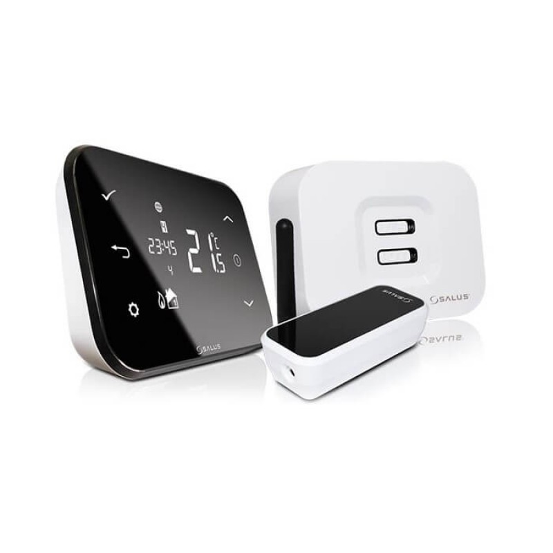 Salus iT500 совместимый с Интернетом, программируемый термостат, может контролировать отопление и горячую воду или отопление в двух зонах. Бесплатные Приложения на AppStore и GooglePlay позволяют управлять Вашей системой отопления со смартфона или планшета. Это позволяет сделать управление еще более гибким и эффективным. Беспроводная связь с модулем котла и шлюзом роутера (868 МГц) делает инсталляцию системы очень легкой и простой. Salus IT500 подключается к Вашей локальной сети (необязательно Wi-Fi) посредством шлюза, идущего в комплекте, использую LAN порт Вашего роутера.