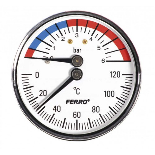 Термоманометр радіальний 0-120°C 0-6 bar 1/2 80мм Ferro TM80R